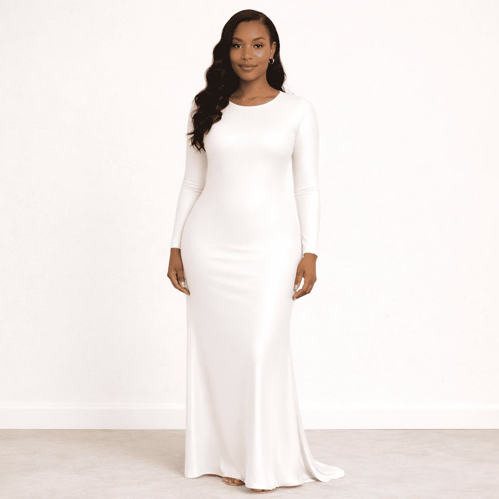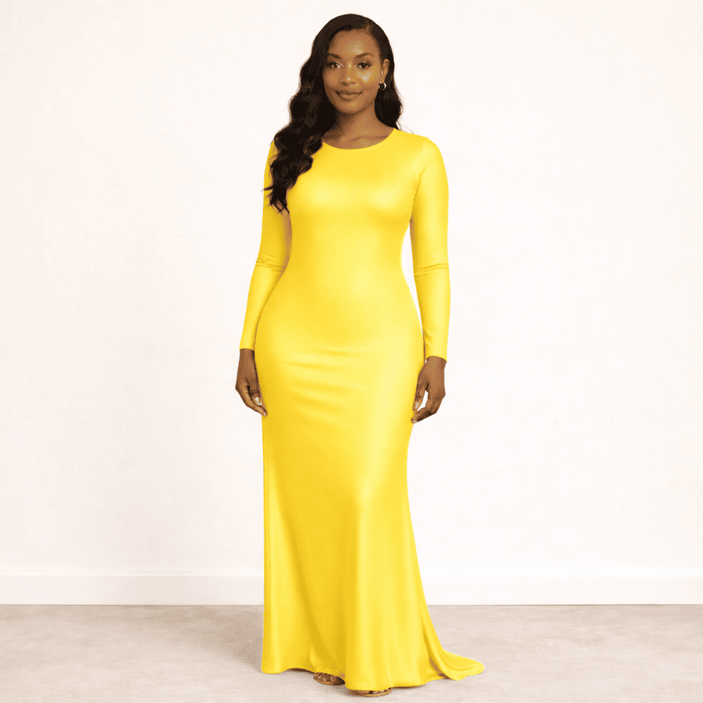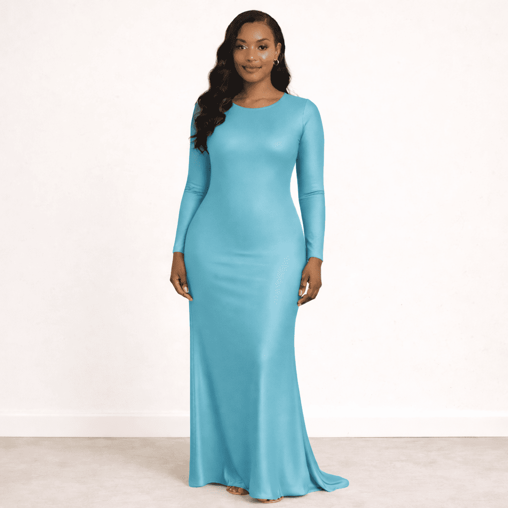 فستان بتصميم عصري أنيق يجمع بين البساطة والجاذبية، مصنوع من قماش مطاطي عالي الجودة يتميز بملمسه الناعم ولمعانه الخفيف الذي يضيف لمسة فاخرة على الإطلالة. تم تصميم القصّة لتنساب على الجسم بشكل جميل، مما يبرز القوام بطريقة أنثوية جذابة مع الحفاظ على الراحة طوال فترة الارتداء.